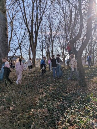 Bevor Müll gesammelt wurde, lernten die Fünftklässler*innen unter Anleitungen von Lucy, Lena und Jana den Weg des Mülls in die Meere und wie lange Müll braucht, bis er sich zersetzt. Hättet ihr beispielsweise gewusst, dass eine Bananenschale bis zu fünf Jahre braucht, bis sie verrottet ist? PET-Flaschen und Getränkedosen brauchen sogar bis zu 500 Jahren, bis sie zersetzt sind. Hätte Martin Luther seine Limo-Dose in den Wald geworfen, könnte man immer noch Reste finden.
