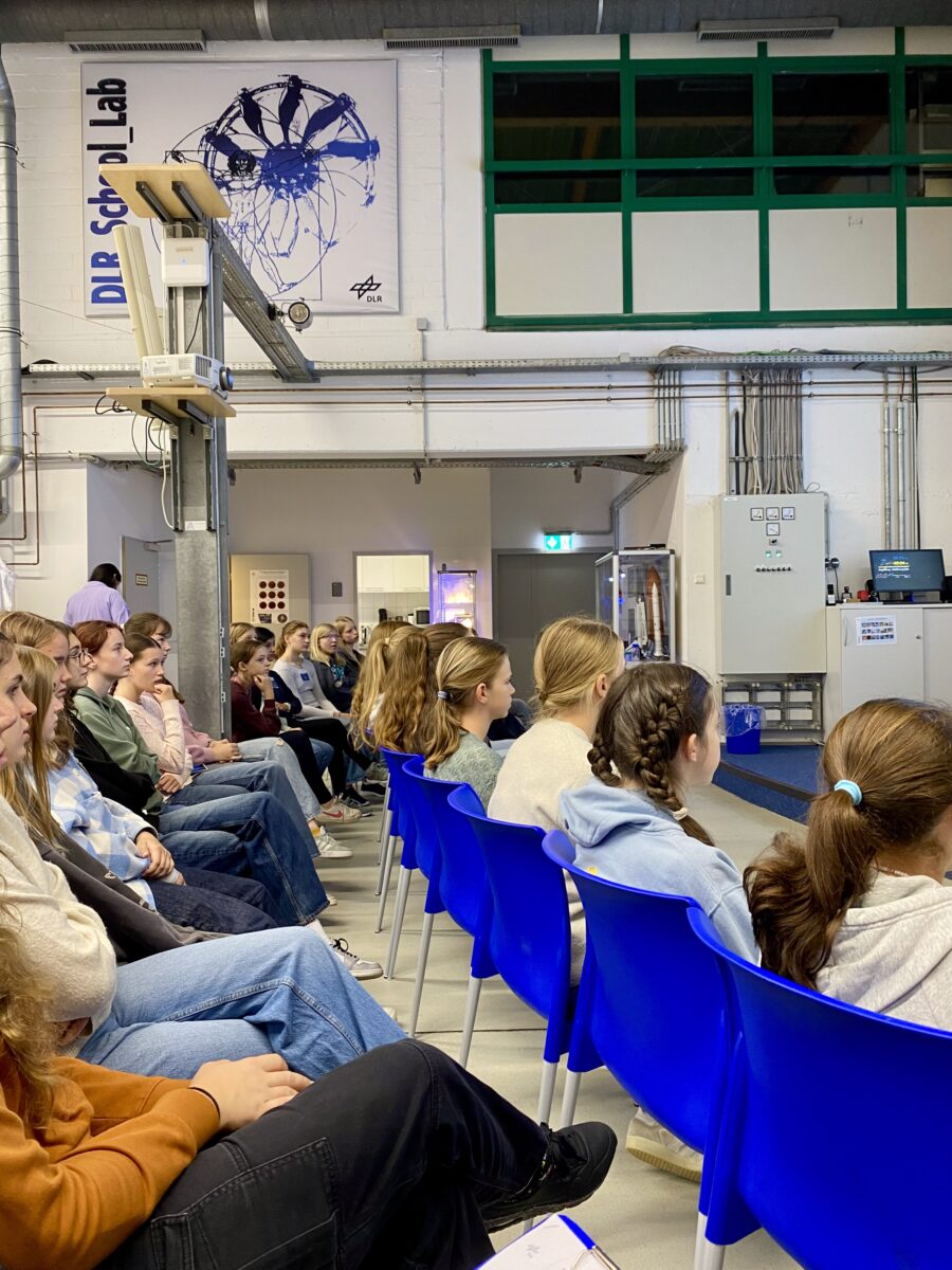 Am 16.09. war es endlich soweit: Unsere jungen Forscherinnen sind im Rahmen der Mädchenbegabtenförderung nach Köln zum Zentrum für deutsche Luft- und Raumfahrt (DLR) gefahren und haben einen ganzen Tag lang gemeinsam mit jungen Wissenschaftlerinnen galaktische Experimente im School_Lab durchführen dürfen. Wer kann schon von sich behaupten einen eigenen Kometen erzeugt zu haben?